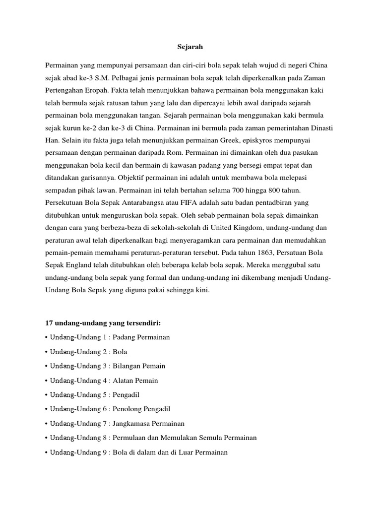 The Number of Players. Dalam permainan bola sepak Undang-Undang Permainan terkini terdiri daripada. Up to 24 cash back Pada masa ini bola sepak dimainkan dengan tiada peraturan mereka boleh memegang dan membawa lari bola.